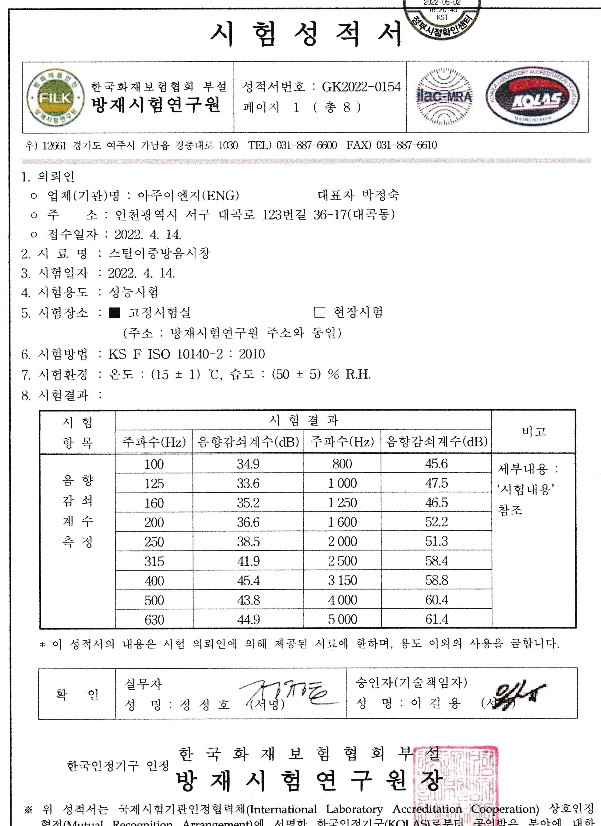 방음시창 시험성적서 (시험일자 2022.04.14 )